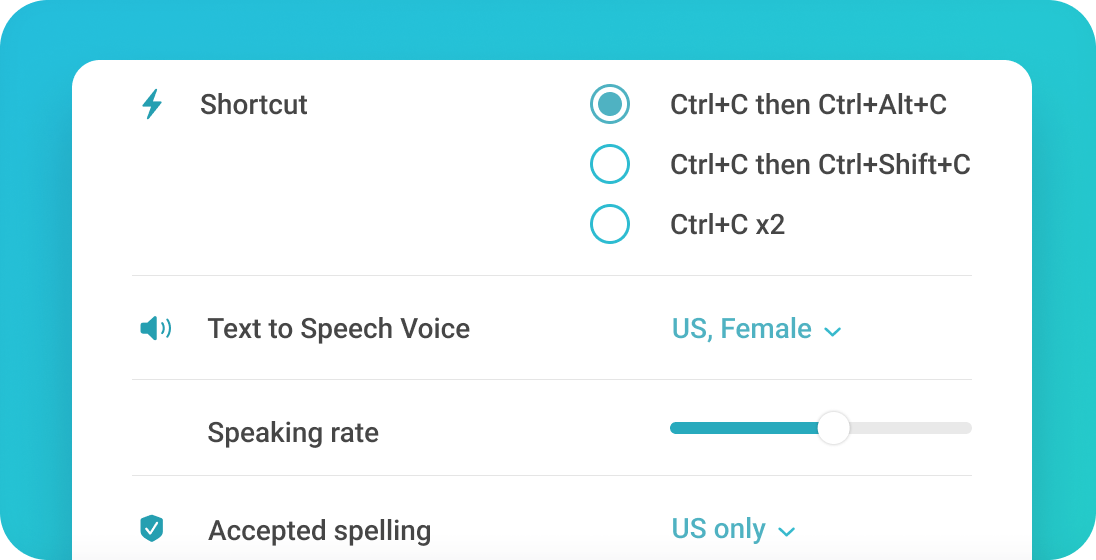 Ginger builds its products using accessibility-by-design principles. Enabling text to speech on Ginger helps dyslexics & the visually impaired utilize our apps by listening to the alternatives to their texts.