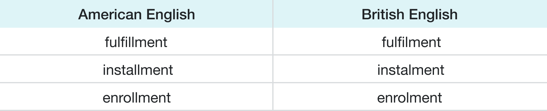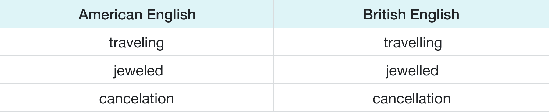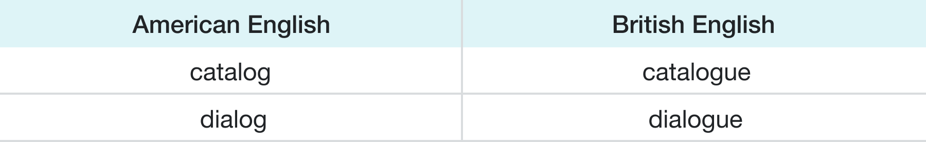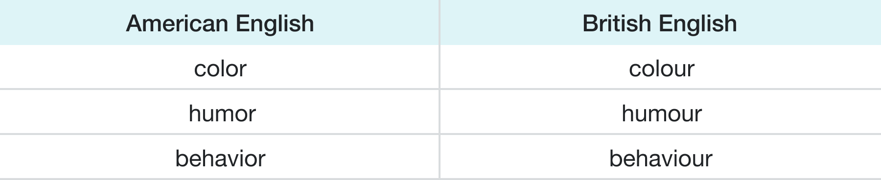 Spelling is the most noticeable difference between American and British English. Famed American lexicographer, Noah Webster, introduced the American spelling reform in the early 1800’s. Major spelling differences include: