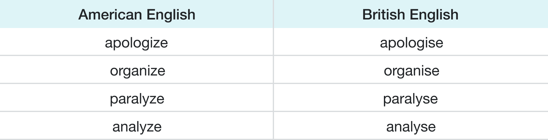 The -ize spelling is often incorrectly seen as an Americanism in Britain. While British spelling mostly uses the -ise ending as it’s more common, it’s just a convention and not a rule. However, the -ize ending is always used in the United States. However, the -yse ending in the UK is a rule and most be followed unless American printing style is being used.